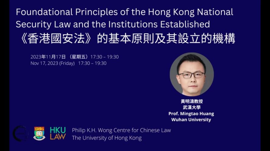The Hong Kong National Security Law is an exceptionally distinctive legislation. Although not enacted within the Hong Kong SAR, it has been specifically tailored to address Hong Kong’s “unique circumstances” and aims to achieve objectives with “Hong Kong characteristics”. This law incorporates numerous “Mainland China” legal concepts, but it is essential not to merely transplant or misapply the theories, methods, and standards of mainland criminal law or criminal procedure. Instead, we should strive to maintain consistency and collaboration with the existing laws of the Hong Kong SAR while respecting the legislative intent, and striking a balance between safeguarding national security and protecting fundamental rights. This lecture will focus on the unique aspects of the Hong Kong National Security Law and discuss pertinent issues to consider in its implementation and judicial adjudication.